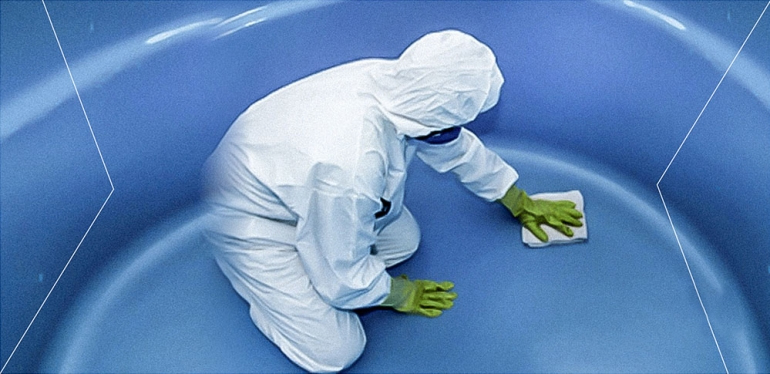 Limpeza e escovação das paredes e pisos internos. Descarte de toda a agua utilizada na limpeza.